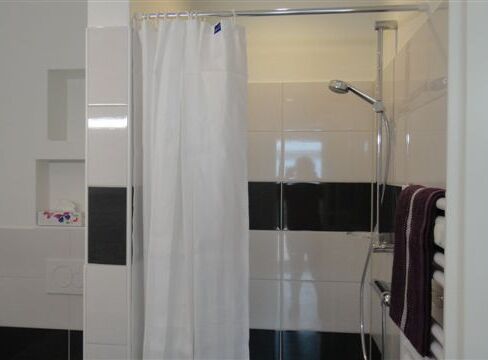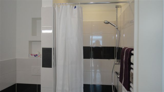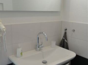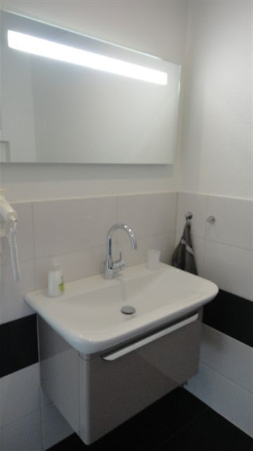 Das Bad mit Föhn, hochwertige Möbel, barrierefreie Duschen, WLAN vorhanden. Waschmaschine, Trockner, Bügelbrett, Bügeleisen usw. vorhanden.